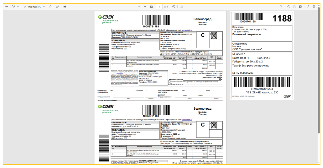 После того как заказ был введен в сервисе «1С:Доставка», рекомендуется еще раз его проверить перед отправкой в ТК.