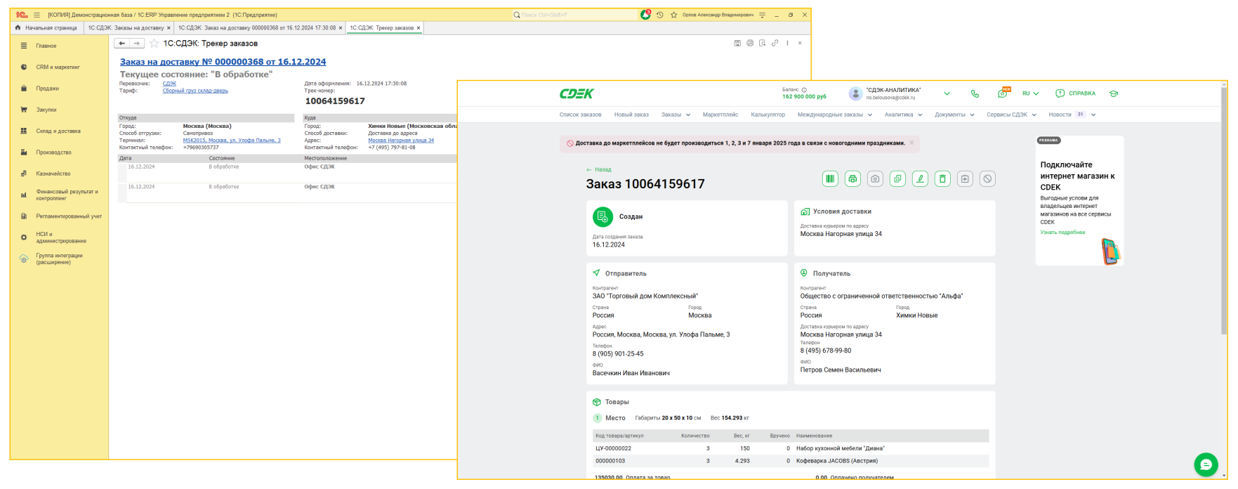 Бесшовная интеграция систем 1С и транспортных компаний — без перехода между личными кабинетами