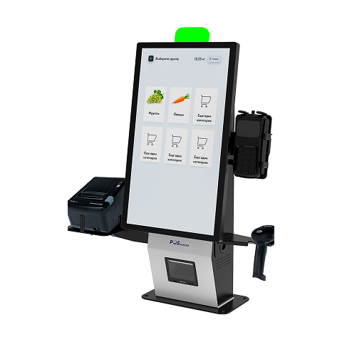В цену входит ПО «1С:Рабочее место кассира», которое поддерживает режим работы «Касса самообслуживания» (КСО). В этом режиме покупатель может самостоятельно сформировать чек, сканируя штрихкоды товаров и товарных марок. Программа подскажет, какие товары в корзине покупателя подлежат маркировке. Весовой товар можно добавить в чек, взвесив его на подключенных электронных весах и выбрав товар в плиточном меню.